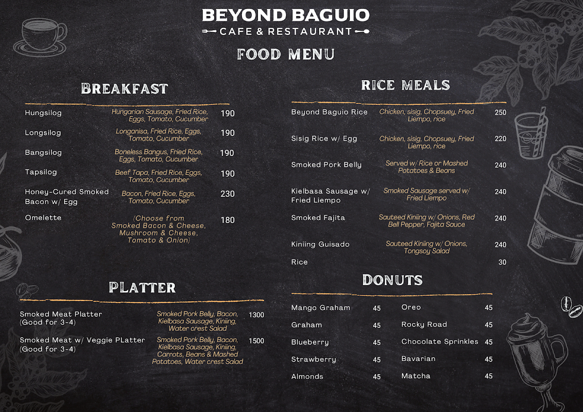 Beyond Baguio Cafe has quickly cemented its status as a must-visit destination in the area. If you're traveling through Itogon, make sure to take a moment from your exploration to experience the charm and delight this cafe has to offer. With exquisite food, delightful coffee, and captivating mountain views, your time at Beyond Baguio Cafe will undoubtedly be one to remember.
